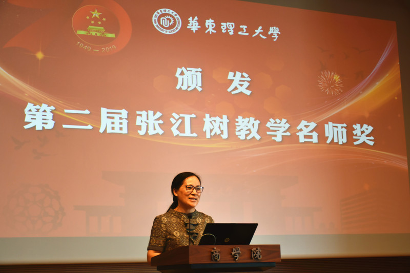 随后,张先梅宣读第二届“张江树教学名师奖”获奖名单,化工学院许志美、机械与功力工程学院周邵萍获得一等奖,材料科学与工程学院庄启昕、化学与分子工程学院徐志珍获得二等奖。王慧锋和唐颂超为获奖教师颁奖。