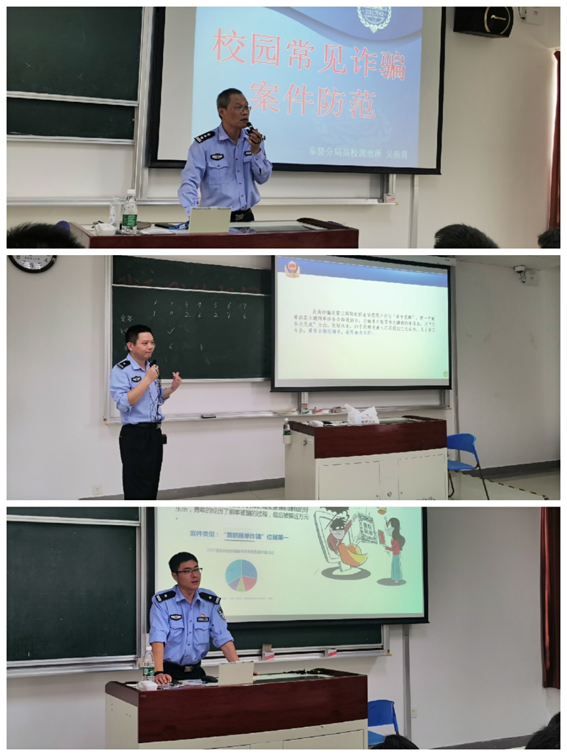 高校派出所的警官们根据多年从警经验,结合高校发生的多起诈骗案例,生动地向同学们列举了基于电信的“猜猜我是谁”“兼职诈骗”,依托电商平台的“刷单诈骗”“网上购物陷阱”以及所谓的“良心商家退款”等多种诈骗形式。此外,他们还重点介绍了校园多发的QQ诈骗和“校园贷”诈骗,警示同学们提高危机意识和辨别能力,掌握基本常识,做到不贪小便宜、不轻易转账、理性消费。