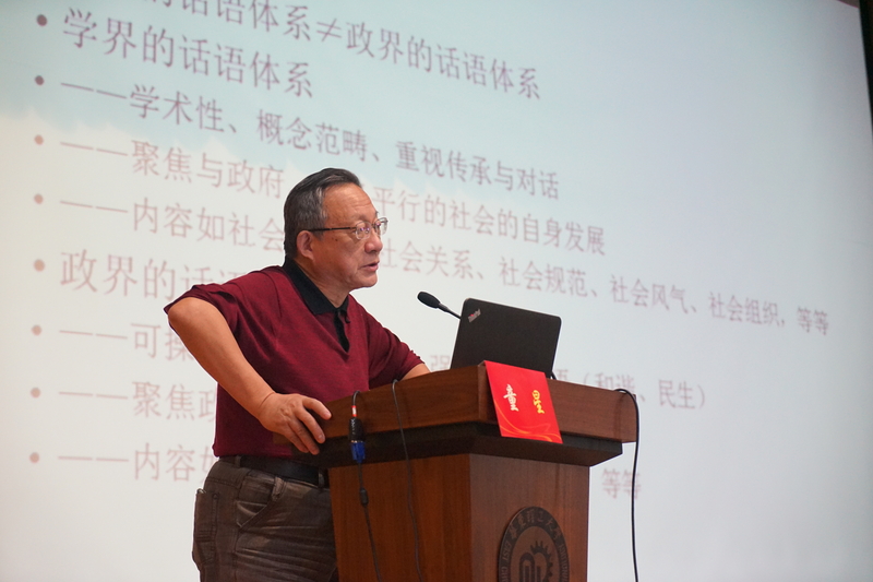 主题发言环节由我校社会与公共管理学院副院长杨发祥教授主持,南京大学政府管理学院童星教授、中国人民大学社会与人口学院刘少杰教授、南开大学社会建设与管理研究院院长关信平教授、上海大学社会学院院长张文宏教授、华东师范大学社会发展学院院长文军教授、我校何雪松教授等共计6位专家就新中国成立70年社会建设变与不变主题进行发言。
