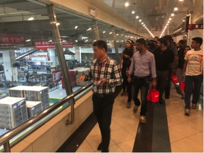 在开能环保净水产业园,现场工作人员向留学生们讲述了开能集团的发展历程,带留学生参观了亲水平台、开能文化厅、产品体验中心、机器人自动化制造车间、自动化立体仓库,让学生感受到了开能集团全球领先的制造能力与承担的企业社会责任;