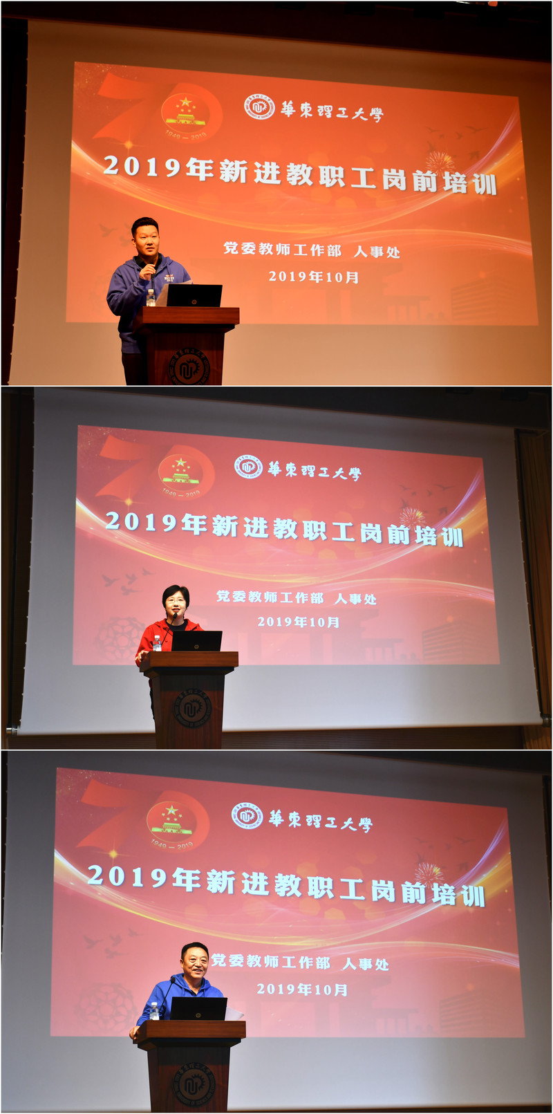 2019年新进教职工岗前培训为期8天,参训人员共182名。培训内容既包含理论讲授、制度介绍,又有经验分享、座谈讨论,还有素质拓展、文艺晚会。培训邀请了相关职能部门负责人介绍校史校情,明确学校规划,讲解学校人事、科研、财务、信息化、工会、保密、后勤、实验安全等工作的基本情况和相关制度;开展“名师面对面”系列报告,提升新教师育人能力;通过素质拓展训练,锻炼新教工团队精神,树立规则意识;举办“奋斗的我,最美的国”联欢晚会,展示青年教工爱国奋斗精神;为新教师准备温馨的入职“大礼包”,拍摄入职纪念照,帮助新教工尽快融入华理大家庭。本次培训是一次师德修养之训、育人能力之训、知校爱校之训、凝心聚力之训,将进一步激励新教师爱校荣校,开拓进取,为学校“双一流”建设努力奋斗,为荣校强国破浪前行。