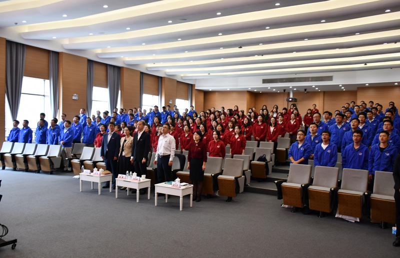 图片说明:全体参会人员合唱校歌《明天的希望》