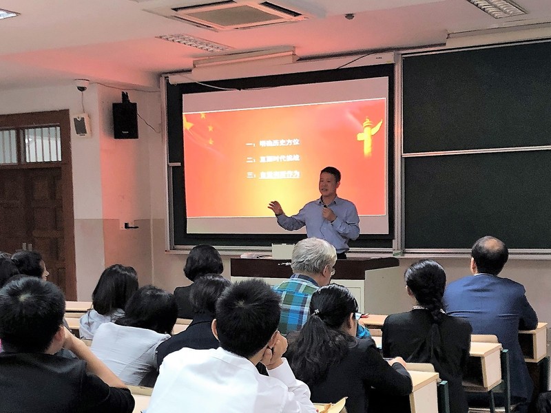 邱卫东从“直面历史方向”“直面时代挑战”“自觉有所作为”三个方面,旁征博引,全面精辟论述了中国特色社会主义进入新时代,国家发展所面临的形势和任务,就高等院校师生如何不忘初心、牢记使命、继续奋斗提出了自己的观点。邱卫东指出了新时代高校师生的使命和责任,并对与会师生提出希望:要自觉在工作学习中努力践行“不忘初心、牢记使命”的深刻内涵,积极为新时代中国特色社会主义建设贡献智慧和力量。