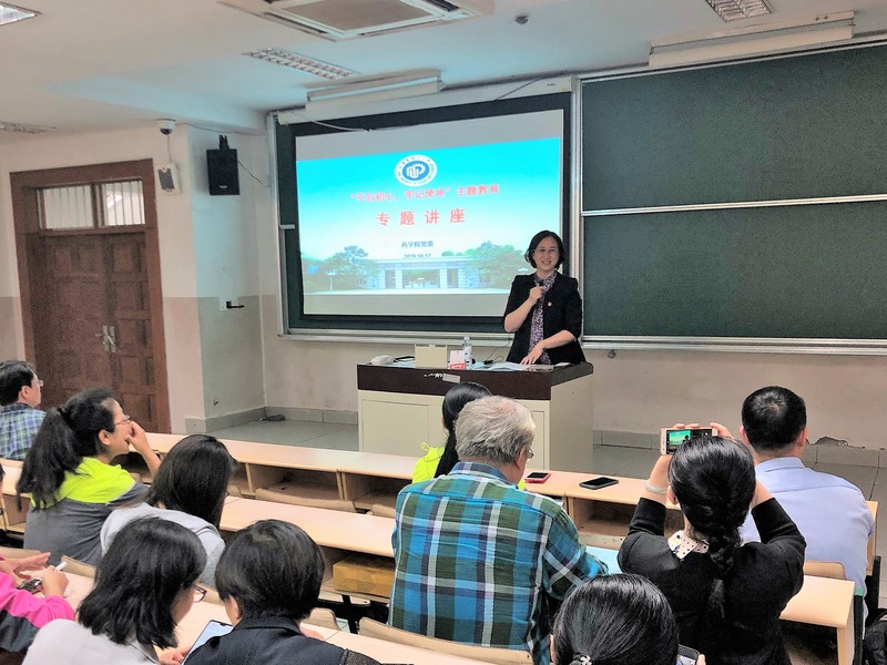 10月17日中午,药学院党委在四教111举办“不忘初心、牢记使命”主题教育专题报告会。马克思主义学院副院长邱卫东博士应邀作了题为“新时代推进中国特色社会主义的应有自觉”的报告。药学院全院教职工和部分研究生党员参加了会议。报告会由药学院党委书记张青主持。