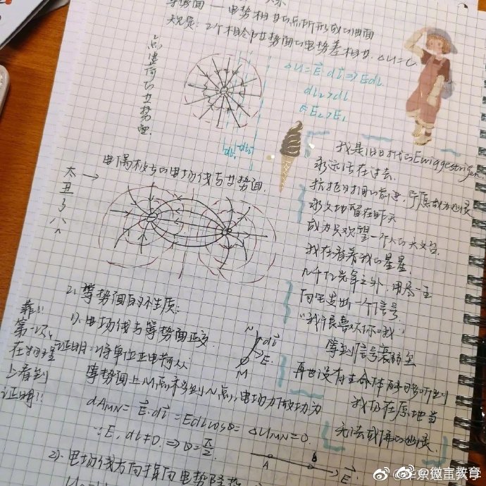 “数”中有画,画中有“数”,字迹工整,思路清晰,贴纸+插画+便签+彩色笔与学习更配哦。笔记本在@华东理工大学 的小伙伴手里俨然有了艺术品的“气质”。你的学习笔记咋样?晒晒