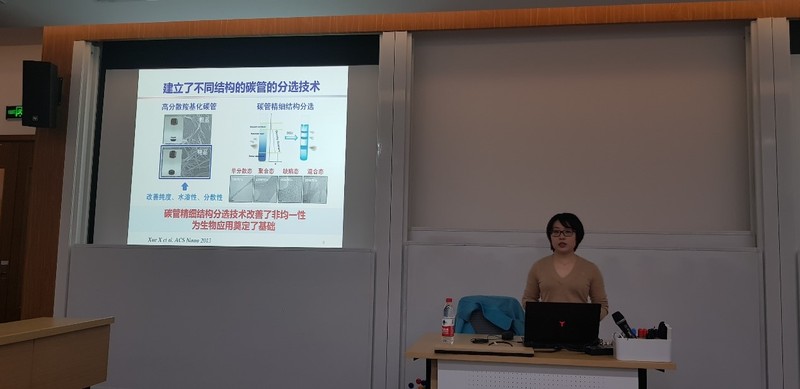 雷波的报告主要基于一种无机-有机分子杂化的材料设计策略,将生物活性含硅化合物杂化进生物高分子网络,制备了一系列多功能的含硅生物活性无机-有机杂化医用材料,实现了材料在力学性质、降解性、可加工性等方面的有效调控,同时在内在生物活性功能上赋予了材料抗菌活性、抗氧化、抗炎、电活性、组织诱导活性、抗癌活性等多种能力,为合成新一代具有内在多功能特性的组织诱导再生生物活性材料,以及体内植入可降解移植体提供了重要的研究思路。薛雪主要报告了纳米材料自身在脑部疾病中的生物效应、诊疗及其机制研究,包括单壁碳纳米管可通过改善溶酶体酶的相关活性加速降解脑内堆积的淀粉样蛋白,缓解阿尔茨海默病自噬相关缺陷。此外,她在2016年首次提出碳纳米材料对甲基苯丙胺(冰毒)所致精神依赖性的显著逆转作用,且在有效剂量范围内未发现显著毒副作用,提示碳纳米材料具有良好的抗药物成瘾潜质。
