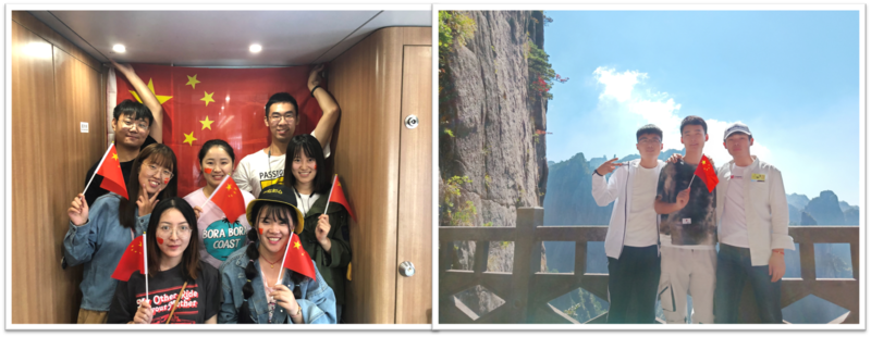 带着国旗去旅行。国庆期间,同学们带着国旗领略祖国的壮丽山河,探寻历史遗迹,感受祖国的日新月异,用笑脸和国旗定格伟大祖国的美丽山川和人文景观,表达对祖国母亲的真诚祝福。