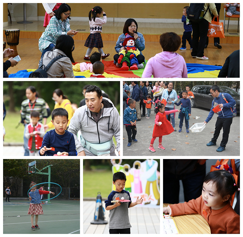 国旗下的亲子大合照,让活动现场气氛瞬间升温,家长和“华二代”都开心地动了起来。今年的游园会由铭记时光、告白祖国、校史问答、你抛我接、青春飞扬、齐心协力、翰墨传承、共享书香、快乐家人等9个游戏任务组成,“华二代”在完成家庭任务后会得到一枚印章,最后凭印章兑换精美的礼物。每个活动点都围满了孩子,虽然天气有点冷,但丝毫不影响孩子们的参与热情。在精彩有趣的游戏面前,大家脸上洋溢着幸福灿烂的笑容,全身心地投入到游戏中,尽情张扬着活泼好动的天性,抒发着心中的快乐。家长们也积极认真、乐此不疲地配合着孩子们,整个校园充满了欢声笑语。在工会八角亭内外,主办方还为3岁以下的小“华二代”们准备了非洲音乐、非洲舞、吹泡泡、欢乐降落伞等活动,这让平日忙忙碌碌的教职工们暂时放下手头工作,走进户外,陪着孩子们尽情享受童真一刻与美妙的亲子时光。