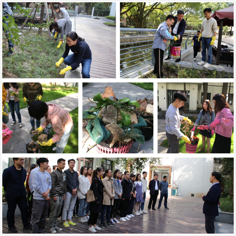 当天中午,所有人员在团结三楼庭院集合列队,学院党委副书记周建国介绍了劳动任务和分组情况。分发劳动工具后,各组组长带领大家热火朝天地干了起来,捡拾有火灾隐患的干树枝,拔除绿色植被中的杂草,清理庭院中的卫生死角等。在大家的共同努力打扫之后,团结三楼、四楼庭院变得美丽整洁,改善了师生的学习生活环境。
