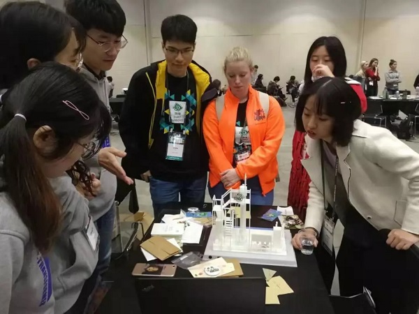 “一位来自德国团队的小哥哥来到我们的硬件展区前,被我们硬件模型的设计,尤其是那个细长的气升式发酵罐给吸引,并表达了他的疑惑。