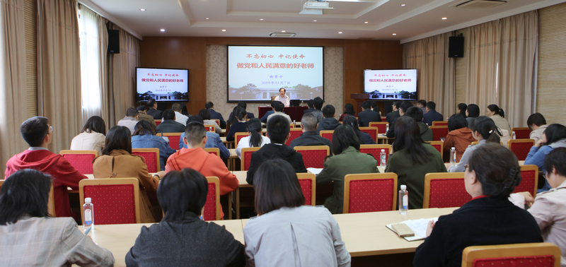 兴国必先强师,新时代办一流大学的关键在于教师。作为高校教育工作者,如何勇担使命,做光荣的人民教师?曲景平强调,坚持立德树人根本任务,做党和人民满意的好老师,就是要按照习近平总书记的要求,争做新时代的“四有”好老师,以德立身、以德立学、以德施教;当好“四个引路人”,培养社会主义建设者和接班人;坚守“四个相统一”,担负起塑造灵魂、塑造生命、塑造新人的时代重任。曲景平列举了一批校内外的教师典型,其中,既有心有大我、至诚报国的黄大年,把爱的种子播撒在祖国雪域高原的钟扬,花甲进苗乡、烛照学子路的陈立群等“时代楷模”,也有我校笃信“汗水哲学”、让中国煤气化技术走向世界的于遵宏教授,植根乡土的“知识分子的典范”曹锦清教授,以及退休后到最需要的地方去支教的郁仁德老师等一批近在身边、可学可比的好老师。他号召广大师生对标典型,向身边的优秀教师学习,激发对教育事业的热情和责任担当。