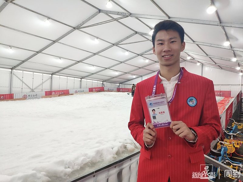 王金鹏是服务于北广场装备冰雪室外展区的一名“小叶子”,该展区与冬奥会紧密结合,是今年新增设的,主要突出展示冰雪文化,包括冰、雪体验,冰雪运动VR体验,冰壶体验等等。