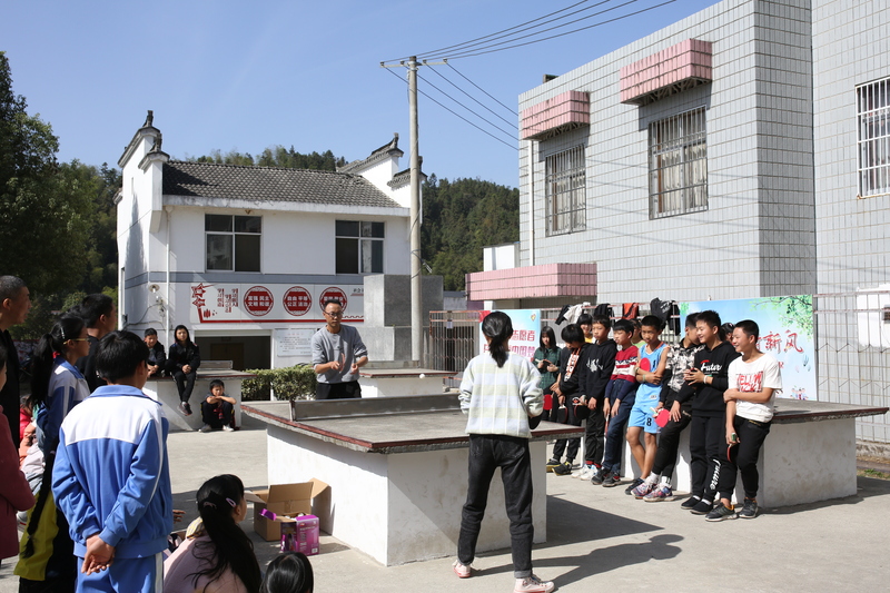 会后,公共体育系党支部向塔坊学校捐赠了体育器材。朱鹏还为该校带来了一堂乒乓球教学示范课。