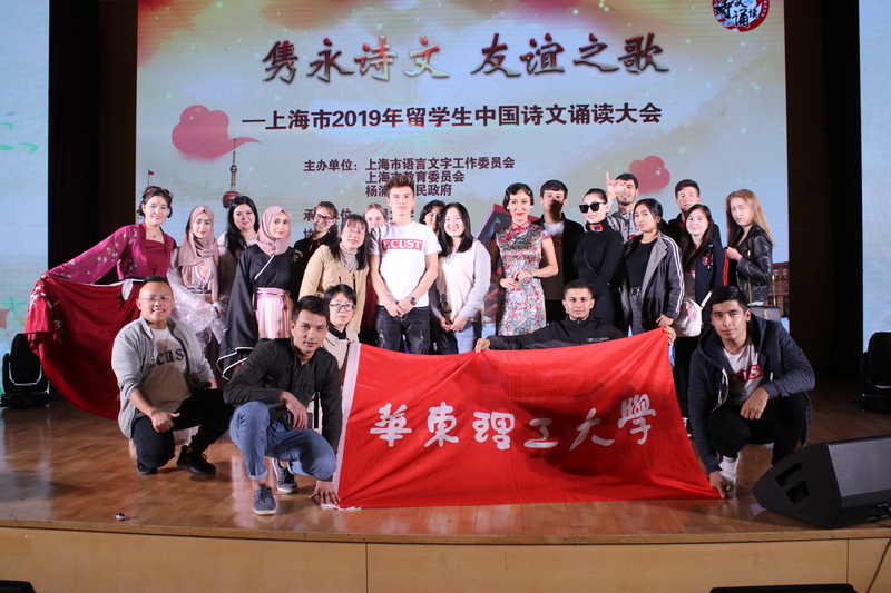 11月10日下午,隽永诗文,友谊之歌——上海市2019年留学生中国诗文诵读大会展演活动在复旦大学举行。我校选送的节目《春》获得最佳人气奖、《陋室铭》获得最佳创意奖。本次活动由上海市语委、上海市教委、杨浦区人民政府主办,复旦大学承办。大会共吸引了18所高校的300余名留学生报名参加,其中,43个节目进入了市级复选。最终,13所高校选送的18个节目进入本次大会的现场展演环节。展演内容包括古韵(江南)、风尚(华夏)、踏浪(岁月)、筑梦(时代)四个篇章。