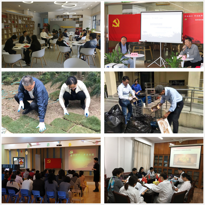 后勤各党支部围绕“我和我的祖国”“奋斗的我、最美的国”开展不同形式的主题教育活动。为深化“三全育人”工作目标,奉贤联合党支部、物业党支部分别开展劳动实践活动,邀请共建支部学生党员一同参与垃圾分类、校园美化,引导学生在劳动中为“双优工程”建设作出贡献。徐汇联合党支部邀请曾在食堂工作的退休老党员讲述后勤人的奋斗历程,激励师生在工作、学习中传承全心全意为人民服务的精神。此外,后勤党委通过读书会、学习先进人物先进事迹等活动,营造了“在工作中学习,在学习中工作”的浓厚氛围,推进主题教育深入开展,取得实效。