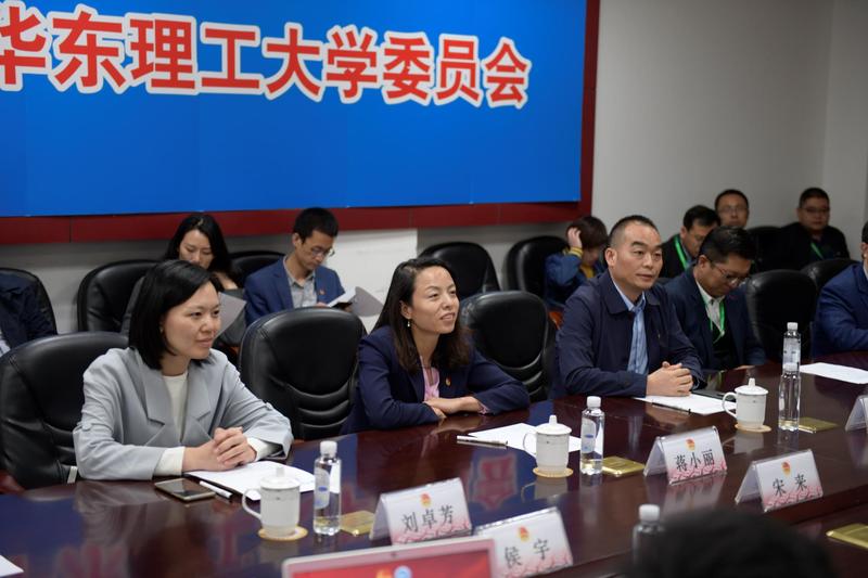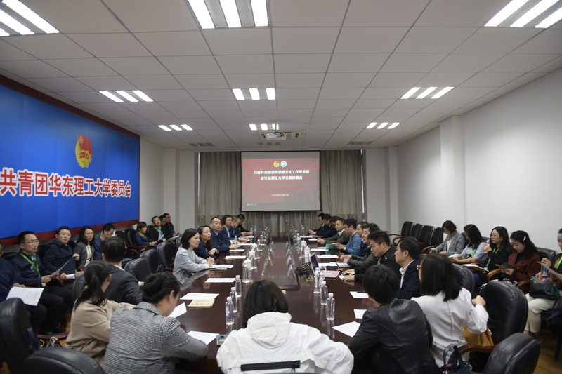 随后,双方就共青团新媒体宣传工作和网络育人的经验和做法进行了交流座谈。宋来首先对蒋小丽一行的到来表示热烈欢迎,并介绍了华东理工大学的基本情况。他表示,近年来,学校党委高度重视共青团工作,积极发挥共青团新媒体网络育人功能和优势,在政治引领、网络育人等方面取得了一定成效,希望今后双方进一步加强交流合作,共同积极探索网络育人的新经验和新做法。