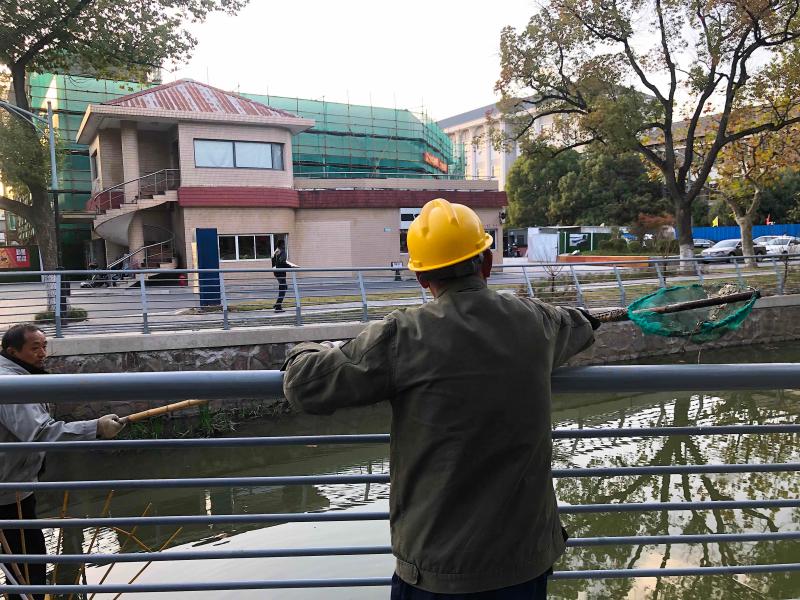 “注意一下这个栏杆,这也是任老师和居民们的智慧。”龚伟请记者特别关注的栏杆分布于整条青春河沿岸,横向护栏的最低一段要比上方其他隔断更为密集。原来,任德呈发现此前由于栏杆间隙过大,地面落叶经常被成批吹向河中,成为淤堵河道的“隐形杀手”。在他建议下,增加的两条细护栏既不影响河岸美观,而且由于“架桥效应”,即便是小片树叶也不容易被吹进河面,大大减少了叶片腐烂造成河道淤堵的隐患。