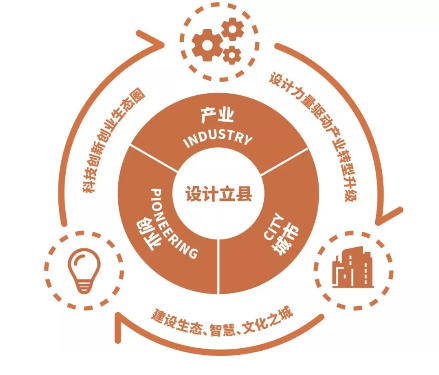 “设计立县”有三大服务体系,即设计+产业,设计+城市,设计+创业;“设计立县”有十大模式,分别是传统设计服务模式,战略合作模式,品牌系统创新模式,候鸟中心模式,创意基地模式,新城镇创新模式,原型创新模式,协同创新模式,创意资本模式,创意云模式;“设计立县”对于城市有六重价值,即融合产业价值,串联区域价值,挖掘文化价值,加载平台价值,加速创业价值,激活知识价值。