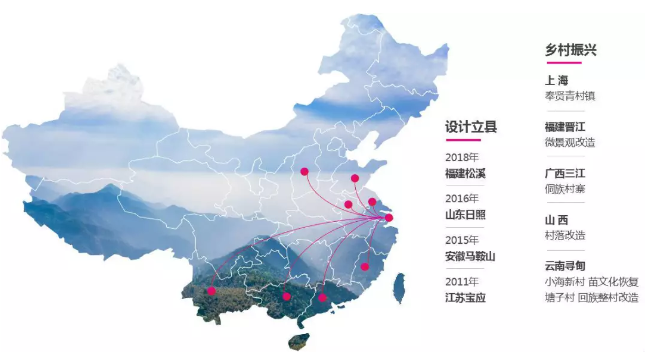 设计立县计划已经推广到了全国十多个地区,包括宝应县、马鞍山、日照、云南寻甸、福建松溪、江苏洋河等。我们会根据各地不同的特色来制定相应的推动路线图,这也是设计思维起到的作用,它不仅作用于产品,更作用于系统、社会创新,体现了非常大的价值。这些项目地点既有相对发达的地区也有国家级贫困县,不同地区面临不同的问题,也因此而制订不同的推进方案。