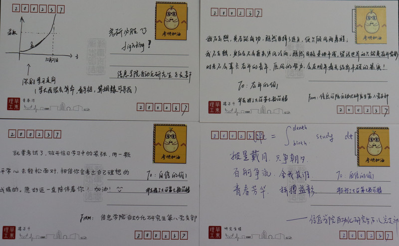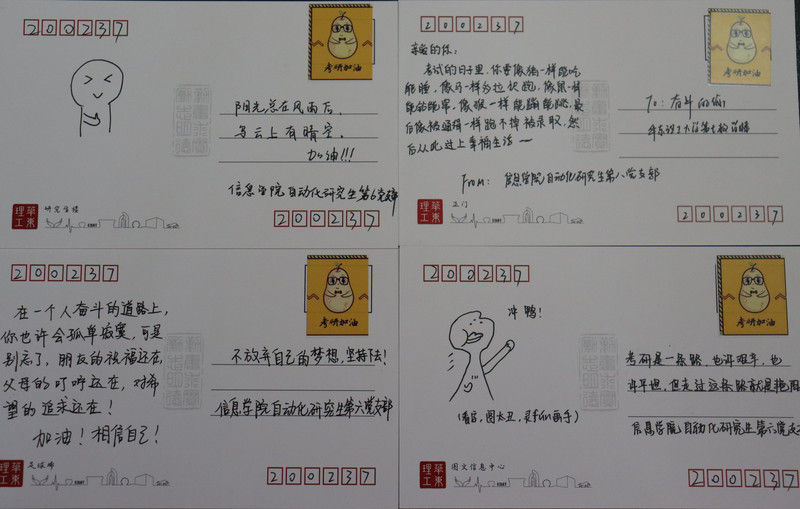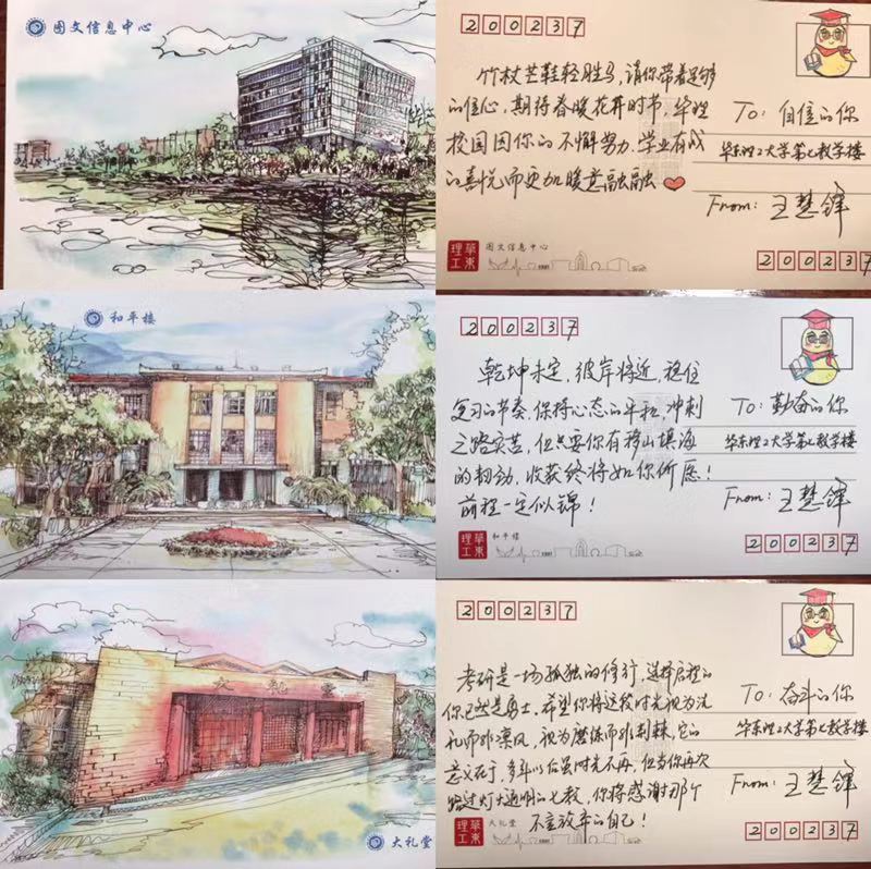 为了更好地传达爱心、温暖和祝福,在此次活动开展前,3个支部精心准备了100份温暖小礼物并组织党员书写祝福寄语,鼓励考研学子调整心态,积极备考;王慧锋也参与到明信片送祝福环节中,用笔尖诉说关切,让温暖的祝福陪伴考研学子度过最后的冲刺阶段。