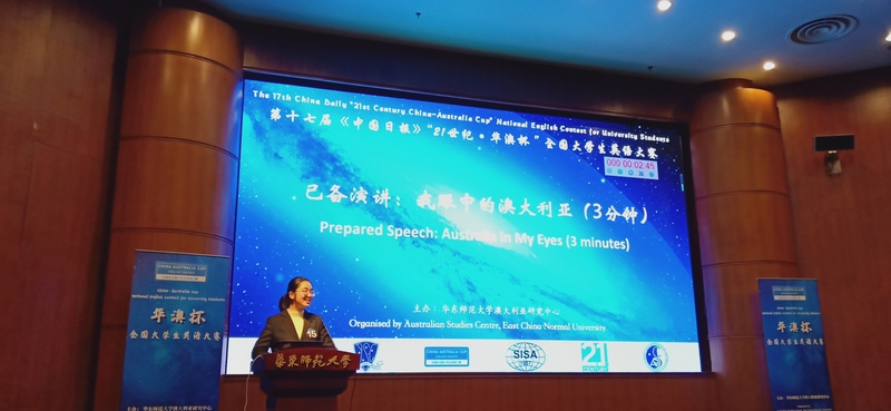 我校澳大利亚研究中心是本次赛事的协办方之一,颜静兰教授作为组委会副主任参与了赛事的组织与协调等工作,英语系主任杨慧敏作为特邀嘉宾全程观摩了比赛。
