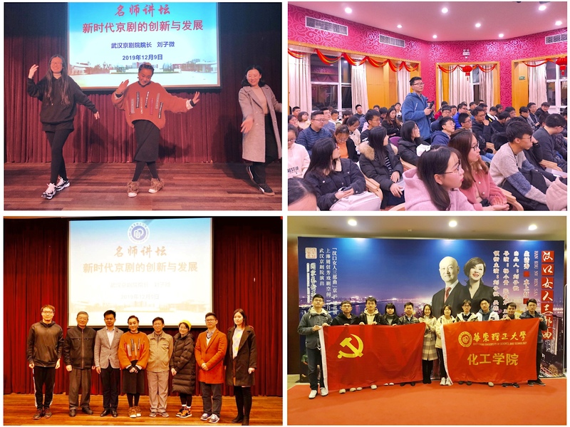 12月9日晚,武汉京剧院院长、国家一级演员、湖北省文联副主席刘子微应化工学院邀请做客我校“名师讲坛”,带来“新时代京剧的创新与发展”主题讲座。上海电机学院原学生处主任何德荣、我校化工学院辅导员以及研究生共100余人聆听了讲座。