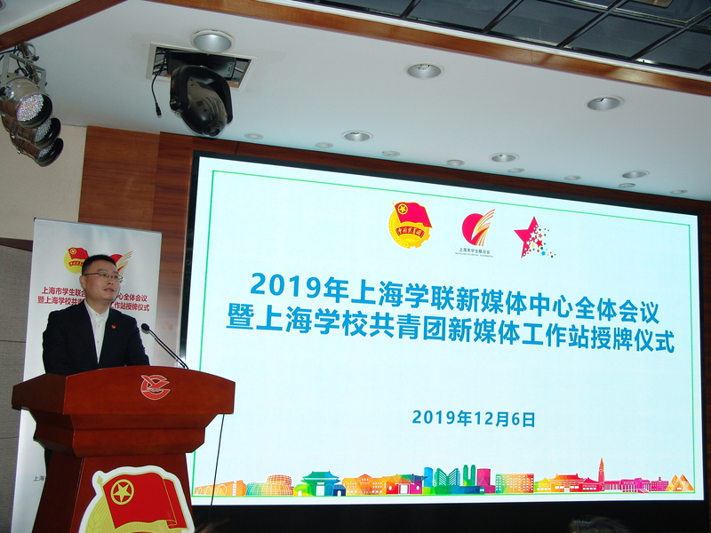 12月6日下午,上海市学生联合会新媒体中心全体会议暨上海学校共青团新媒体工作站授牌仪式在上海市西南位育中学举行。团市委副书记戴冰,团市委学校工作部部长、市学联秘书长徐豪,西南位育中学党委书记金琪等出席活动。会上,团市委向华东理工大学等6家高校新媒体分站授牌,向新媒体中心和分站成员颁发证书。