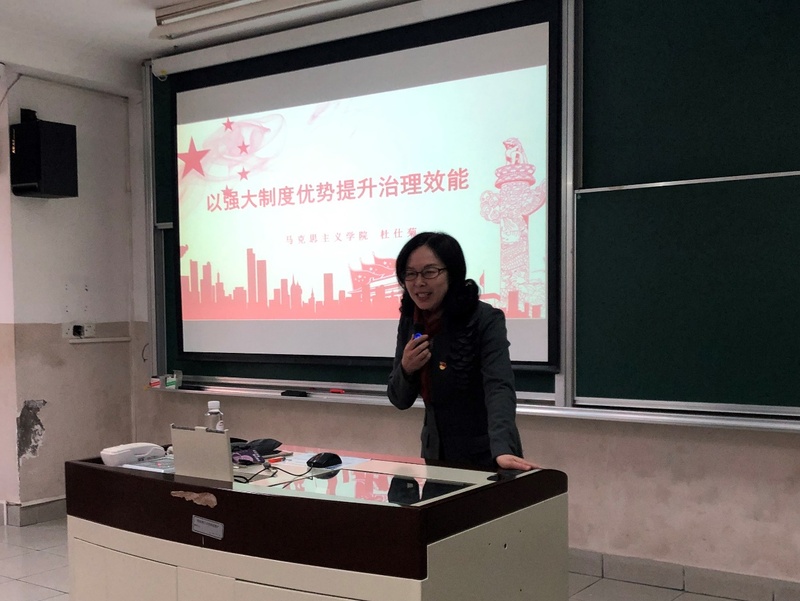 12月13日中午,药学院党委在四教102开展十九届四中全会精神主题学习教育专题报告会。我校党的十九届四中全会精神理论宣讲团成员、马克思主义学院院长杜仕菊教授应邀作了题为“以强大制度优势提升治理效能”的报告。药学院院长宋恭华等班子成员和学院师生参加了报告会,报告会由药学院党委书记张青主持。