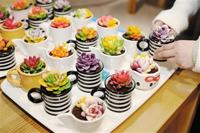 12月15日,上海海洋大学食堂展示甜点——“多肉”慕斯蛋糕。当日,以“青春饭 好食光”为主题的第二届上海大学生美食节在华东理工大学举行。来自上海34所高校的70多道校园精品菜亮相美食节,吸引大学生代表和社会人士参加试吃。