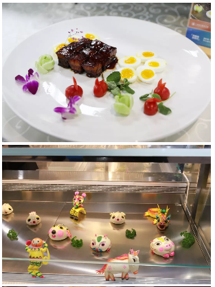 和上一届相比,本届美食节参与高校的数量又增加了一倍。74道食堂美食分布在第一食堂一楼、二楼的6大主题区,五颜六色交相辉映,让人目不暇接。