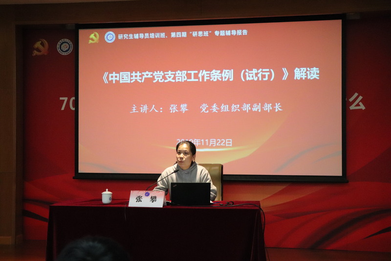 为了让广大研究生党支部书记深入了解新中国重点行业的发展历史,11月15日,“研思班”邀请了上海医药集团制造管理中心副主任、首席专家、我校化学制药专业杰出校友张毓涛作报告。她以“中国制药工业发展简史”为题,详细解读了中国制药工业从无到有、从弱到强的风雨历程。张毓涛以中国医药工业的发展为例,介绍了海归博士的辛勤努力,无数产业工人的不懈奋斗等,从一个侧面展示了中华民族工业栉风沐雨、砥砺前行,让在座同学深刻体会到近代中国工业发展的艰苦卓绝,同时,清醒认识到中国制药工业与国际先进水平的差距,更加明确了新时代广大青年所面临的机遇和挑战、使命与担当。