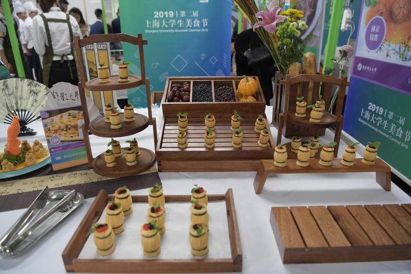 和上一届相比,本届美食节参与高校的数量又增加了一倍。74道食堂美食分布在第一食堂一楼、二楼的6大主题区,五颜六色交相辉映,让人目不暇接。而华理大厨奉上的红烧肉、苏式焖肉、佛家锦囊、木桶酥四道美食,色香味俱全,受到了嘉宾们的一致好评。