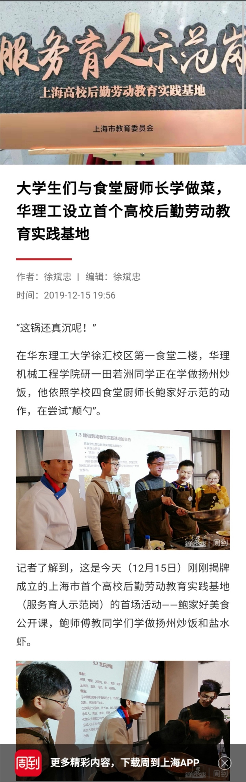 【周到上海】大学生们与食堂厨师长学做菜,华理工设立首个高校后勤劳动教育实践基地