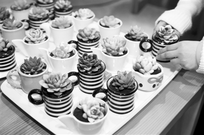 近日,以“青春饭 好食光”为主题的第二届上海大学生美食节在华东理工大学举行。来自上海34所高校的70多道校园精品菜亮相美食节,吸引大学生代表和社会人士参加试吃。图为上海海洋大学食堂展示甜点——“多肉”慕斯蛋糕。 新华社记者 刘颖摄