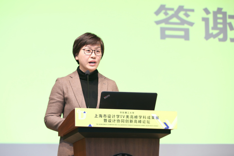 论坛最后,我校艺术学院党委书记赵菡致感谢词,代表学院再一次对上海市教育委员会、上海国际设计创新研究院、协同高校、上海设计之都促进中心、上海德必文化集团、专家学者以及产业单位等表示感谢。赵菡从平稳有序、高效务实、灵活特色3个特点出发,对我校艺术学院参与上海市设计学Ⅳ类高峰学科建设项目进行了回顾与总结。她表示,艺术学院将继续努力,为推进上海高校设计学科的发展、为推进国家“双一流”建设、推进高水平设计学科人才培养等工作贡献华理设计的智慧和力量。