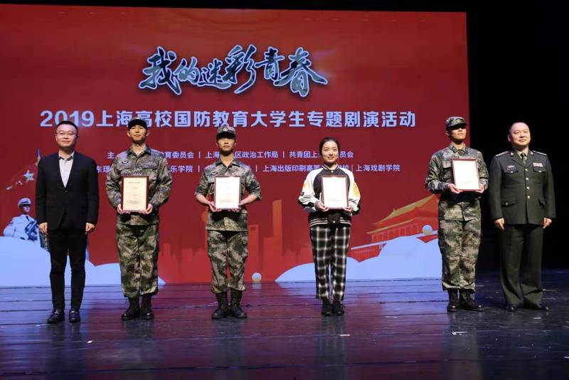 12月22日,由上海警备区政治工作局、上海市教育委员会、共青团上海市委员会联合主办,我校牵头承办的“我的迷彩青春”——2019上海高校国防教育大学生专题剧演活动在上海戏剧学院举行。来自沪上高校的学子们汇聚一堂,自编自演了一系列以高校国防教育、大学生士兵军营生活、大学生征兵等为主题的戏剧。上海警备区动员局局长、上海市人民政府征兵办主任陈立新,上海市教委副主任倪闽景,上海警备区政治工作局副主任张旭伟,共青团上海市委副书记戴冰等出席活动。我校党委副书记、上海市学校国防教育协会会长宋来,上海戏剧学院副院长张伟令,上海出版印刷高等专科学校党委副书记、副校长黎卫应邀出席活动。由我校大学生艺术团原创的舞台剧《又是一年夏花开》在活动中首次公开展演,并获得优秀剧目一等奖,我校获得优秀组织奖。