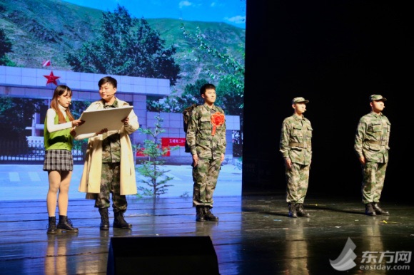 “我的迷彩青春”—2019上海高校国防教育大学生剧演活动今天下午在上海戏剧学院举行。来自华东理工大学、上海音乐学院、上海师范大学、上海出版印刷高等专科学校的学子们汇聚一堂,以情感颂军魂、以戏剧话青春、以戏颂热血军魂、以情谱青春乐章,自编自演了一系列以高校国防教育、大学生士兵军营生活、大学生征兵等为主题的戏剧。
