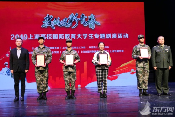 “我的迷彩青春”—2019上海高校国防教育大学生剧演活动今天下午在上海戏剧学院举行。来自华东理工大学、上海音乐学院、上海师范大学、上海出版印刷高等专科学校的学子们汇聚一堂,以情感颂军魂、以戏剧话青春、以戏颂热血军魂、以情谱青春乐章,自编自演了一系列以高校国防教育、大学生士兵军营生活、大学生征兵等为主题的戏剧。
