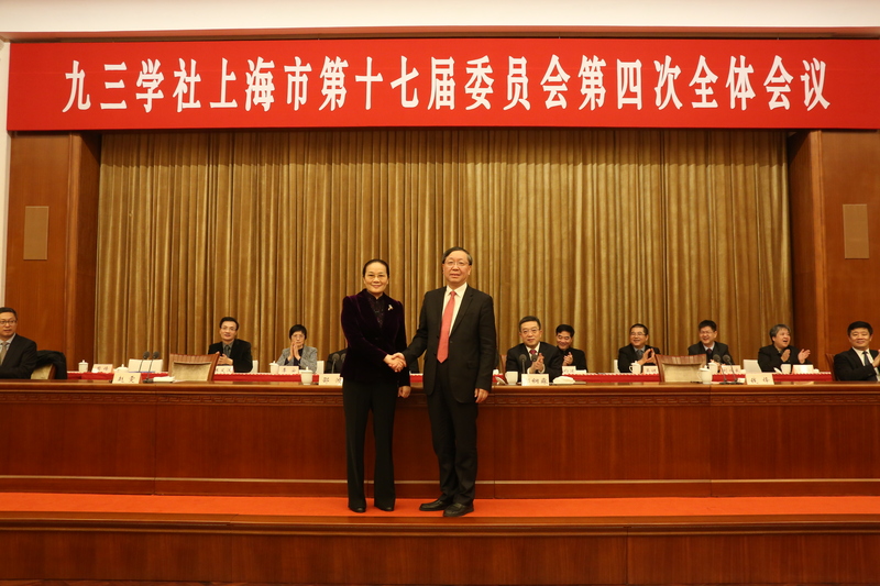12月25日,九三学社上海市第十七届委员会第四次全体会议在友谊会堂召开。全国政协副主席、九三学社中央常务副主席邵鸿,中共上海市委常委、统战部部长郑钢淼分别代表九三学社中央和中共上海市委出席会议并讲话。