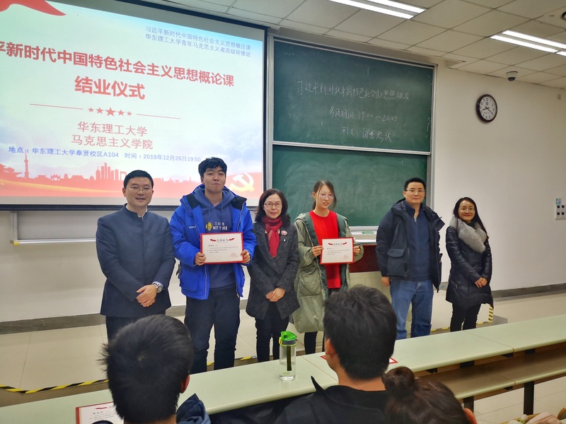 本次课程由马克思主义学院党委书记陈俊傲主持,教师代表奚建武、刘芳等参加此次报告会暨结业仪式。