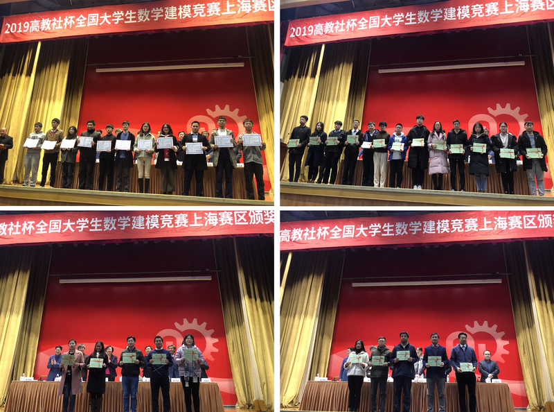 大会对获得2019高教社杯全国大学生数学建模竞赛全国奖项和上海赛区奖项的学生代表及上海赛区优秀指导教师、优秀组织奖代表进行了颁奖。