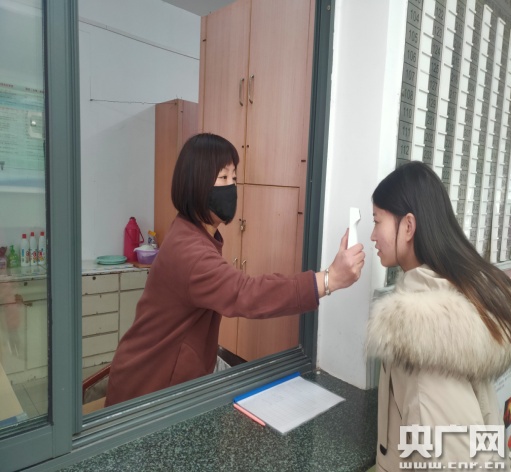 为学生测量体温(央广网发 华东理工大学供图)