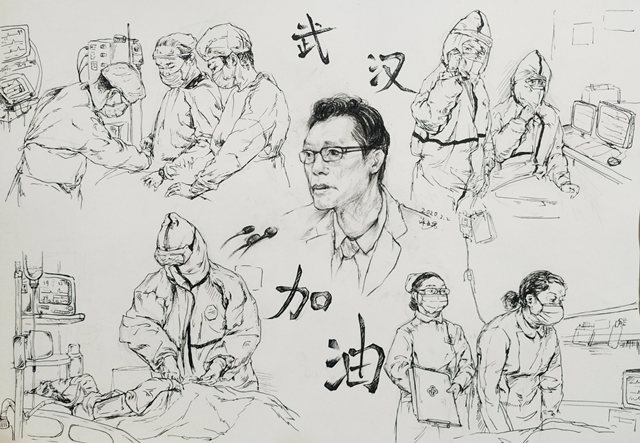 我不知道你是谁,但我知道你为了谁!许亚男说,微信朋友圈里满是武汉一线医生护士们不畏病毒为病人治疗的照片,于是,她就用笔将他们画下来做成抖音上传为他们加油!其中,有钟南山院士,也有最普通的医护人员工作的样子。