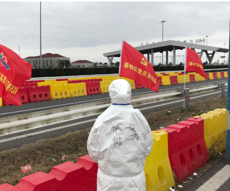 经过线上个人防护培训后,施健成为了防疫青年突击队的一员。在团区委的统筹安排下,她被分到了横沙乡青年突击队中。自2月6日起,在每个服务日的上午8点至下午4点,她都会前往G40高速公路省界道口参加防疫工作。