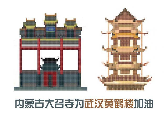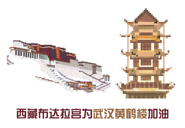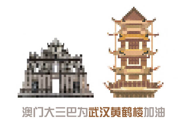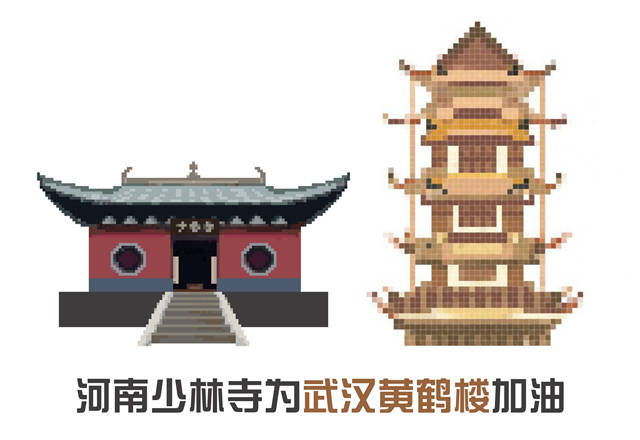 这个春节,新冠肺炎疫情来势汹汹。为了刹住病魔肆虐的脚步,一个英雄的城市做出了对抗击疫情最大的奉献和牺牲。华东理工大学艺术设计与传媒学院19名学生受到“加油,热干面!”的启发,经过一周的接力,在昨天完成了第二季“最有烟火味的应援”,他们用33幅像素画的方式,绘出了各自的地域代表建筑,来为武汉加油。在上海,为武汉黄鹤楼加油的,当然要属石库门!
