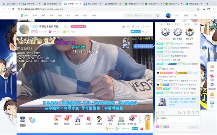 央广网上海2月9日消息(记者唐奇云 通讯员王昶)“疫情宅家不添乱,B站学习不能断。”昨天(8日)下午起,在哔哩哔哩(下称“B站”)名为“化学堂自习室”的直播间里,华东理工大学化学学院2019级学生厉亮开始带领同学们一起进行寒假自习。首日直播的4个小时里,人气峰值为6454 、新增关注498人,在1002条弹幕里,“中国加油!武汉加油!”频频刷屏。