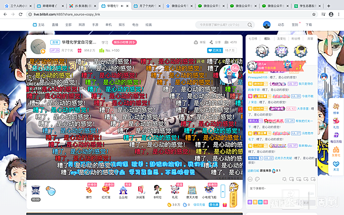 宅在家也不间断学习。华东理工大学在哔哩哔哩(“B站”)开设的“化学堂自习室”直播间很热闹,由化学学院2019级厉亮同学带领同学们一起自习,全程直播。
