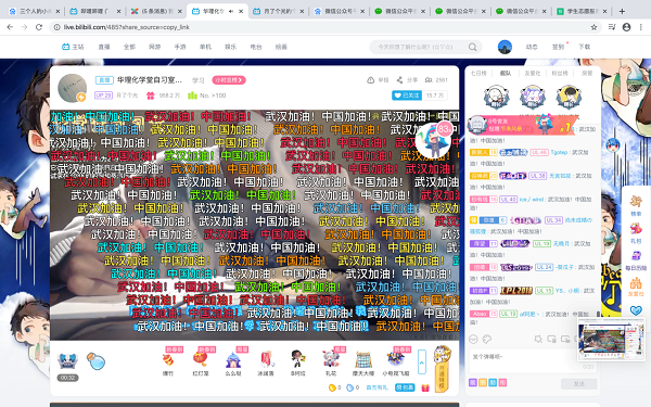 离高校开学至少还有20余天的时间。大学生在家做什么?“疫情宅家不添乱,B站学习不能断。”从2月8日下午起,在哔哩哔哩(即“B站”)名为“化学堂自习室”的直播间里,华东理工大学化学学院2019级的厉亮同学开始带领同学们一起进行寒假自习。首日直播的4个小时里,人气峰值为6454 、新增关注498人,在1002条弹幕里,“中国加油!武汉加油!”频频刷屏。