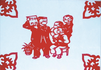 陈炳生特别强调,这组作品其实并不是他一个人完成的。“这些天我儿子、孙女都在家里,9岁的孙女参加过美术班,儿子也对画画感兴趣,在作品的绘画上,他们帮了很多忙,不然10天根本完不成。”这组由祖孙三代一起完成的宣传疫情防控的剪纸作品,在陈炳生看来,分量更重也更有纪念价值。