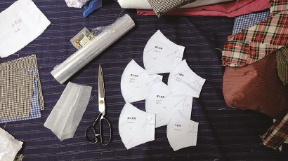 经过一次次尝试,徐微琴根据男、女、儿童这三类人群分别制作了不同大小的样板纸。在她的巧手下,经过裁剪、缝纫、打褶、滚边等一道道工序,原先泾渭分明的棉布、纱布、保鲜膜等材料转眼间就变成了一个个自制口罩。